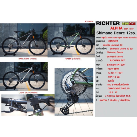 ถ้าคุณกำลังมองหาเสือภูเขา 29 นิ้วที่ “คุ้มเกินราคา” ได้โช๊คลม + Deore 12 สปีด + งานเฟรมสวยๆ RICHTER ALPHA คือคันที่พร้อมพาคุณออกไปลุยได้ทันที