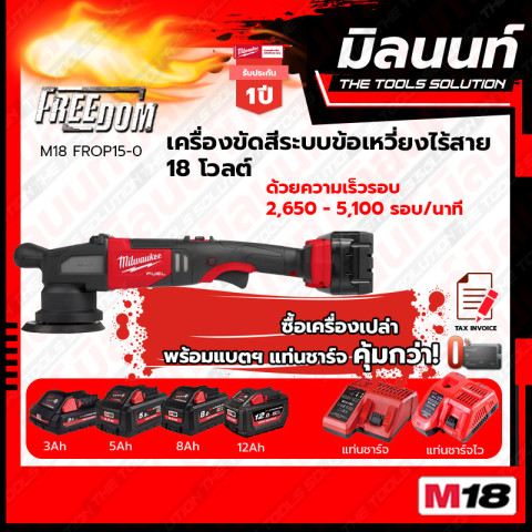 Milwaukee M18FROP15-0 เครื่องขัดสีระบบข้อเหวี่ยงไร้สาย 18V รุ่นงานมืออาชีพ สำหรับงานขัดเงาและลบรอย ให้รอบแรง คุมงานง่าย และทำงานคล่องตัวโดยไม่ต้องกังวลเรื่องสายไฟ เหมาะทั้งงานดูแลสีรถ งานเคลือบเงา ไปจนถึงงานเก็บรายละเอียดพื้นผิวต่างๆ