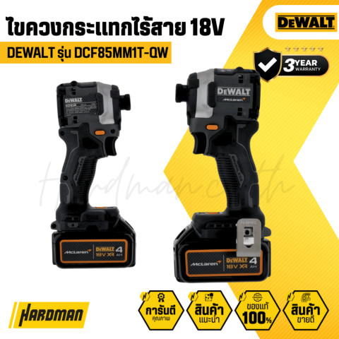 DEWALT DCF85MM1T-QW ไขควงกระแทกไร้สาย 1/4 นิ้ว 18V (McLaren Edition) รุ่นพิเศษลิมิเต็ดที่ผสานพลังงานหนักกับดีไซน์แรงบันดาลใจจากมอเตอร์สปอร์ต โฉบเฉี่ยว โดดเด่น และพร้อมลุยงานขันสกรู/งานประกอบ/งานติดตั้งในทุกสถานการณ์ ด้วยตัวเครื่องกะทัดรัดเพียง กว้างประมาณ 100 มม. ใช้งานคล่องมือแม้ในพื้นที่แคบ พร้อมมอเตอร์ ไร้แปรงถ่าน ให้แรงบิดจัด ประสิทธิภาพสูง และอายุการใช้งานยาวนาน