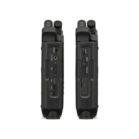 ไมค์ในตัวแบบ X/Y รองรับความดังได้สูง (สูงสุด 140 dB SPL) ปรับมุมรับเสียงได้ 90° เพื่อโฟกัสเสียง หรือ 120° เพื่อภาพสเตอริโอกว้างขึ้น เก็บบรรยากาศได้สมจริงบันทึกได้สูงสุด 4 แทร็คพร้อมกัน