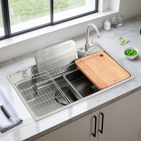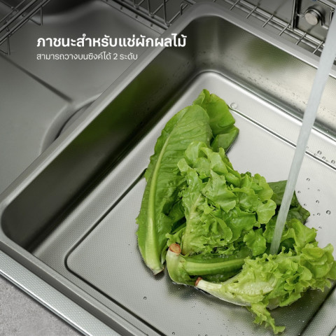 รองรับภาชนะขนาดใหญ่ และช่วยให้เลือกใช้อุปกรณ์เสริมได้หลากหลาย เหมาะสำหรับแช่ผักหรือล้างผลไม้หลายชนิดพร้อมกันสะดือล้างจานขนาดใหญ่พิเศษ พร้อมฝาปิดผิวสัมผัสเดียวกับซิงค์