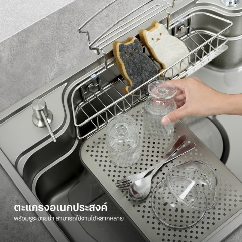 เพิ่มความแข็งแรงให้ตัวซิงค์ ช่วยป้องกันรอยขีดข่วน ลดโอกาสเกิดสนิม และคงความเงางามได้ยาวนานหลุมล้างออกแบบพิเศษ ช่วยพาเศษอาหารไหลรวม