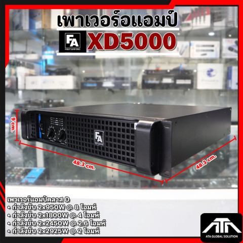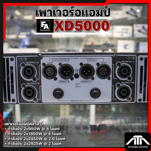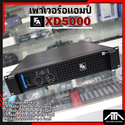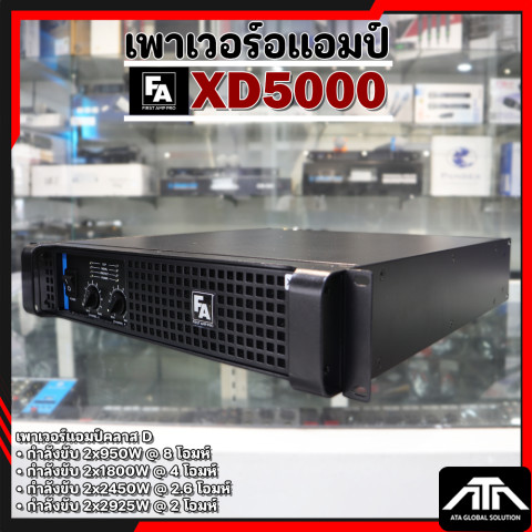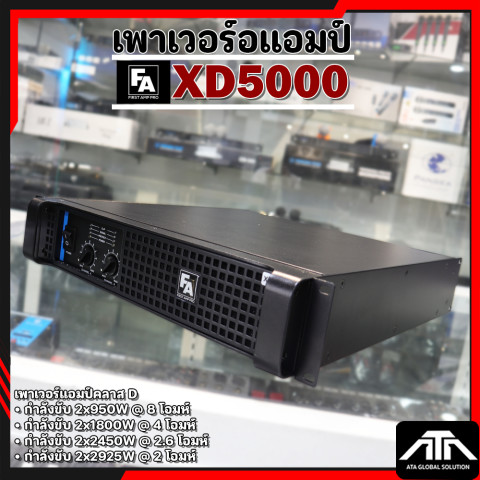 เพาเวอร์แอมป์ FA FIRST AMP PRO XD-5000 เพาเวอร์แอมป์คลาส D รุ่นกำลังขับสูง ที่ออกแบบมาเพื่อสายงานเสียงจริงจัง ให้พลังอัดแน่น ควบคุมเสียงได้ดี และรองรับการใช้งานต่อเนื่องแม้ต้องเจอโหลดต่ำ เหมาะทั้งงานกลางแจ้ง งานคอนเสิร์ต ระบบเสียงรถ และงานติดตั้งที่ต้องการกำลังสำรองสูง