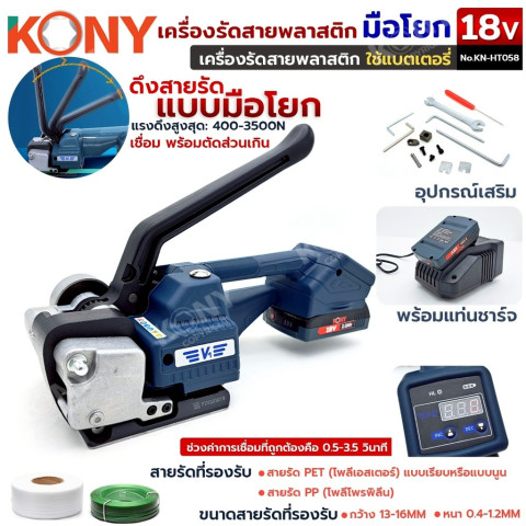 KONY เครื่องรัดสายพลาสติกแบบมือโยก ใช้แบตเตอรี่ 18V แรงดึงสูง รุ่น KN-HT058 ราคา 8,425.00 บาท