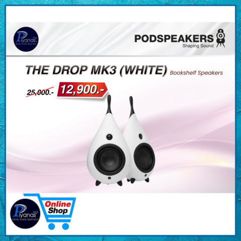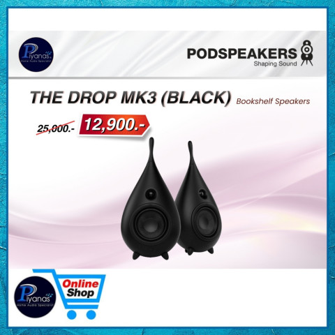 PODSPEAKERS : THE DROP MK3 (Black) คู่ ลำโพงดีไซน์ทรงหยดน้ำสุดโดดเด่นจาก Piyanas Electric/ปิยะนัส อิเล็คทริคส์ ที่ผสานความสวยงามเข้ากับวิศวกรรมเสียงแบบจริงจัง ด้วยตู้ลำโพง “ไม่ขนาน” ช่วยลดเสียงสะท้อนภายในตู้ ให้โทนเสียงสะอาด โปร่ง รายละเอียดชัด เหมาะทั้งตั้งโชว์ในห้องนั่งเล่น มุมทำงาน หรือจัดระบบเสียงในพื้นที่ที่ต้องการความมีสไตล์