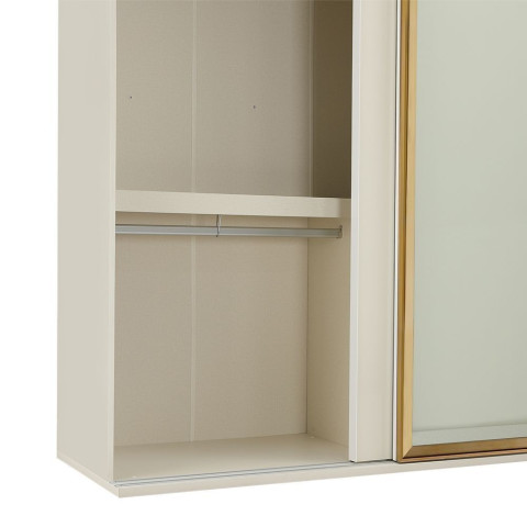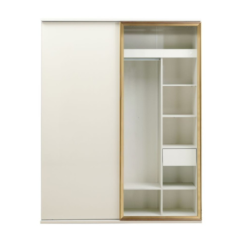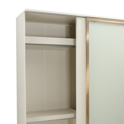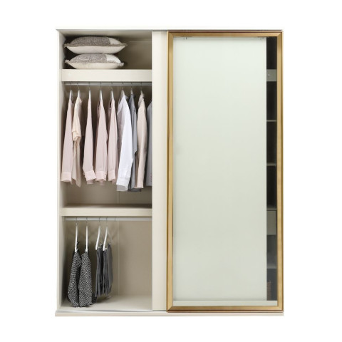 ตู้เสื้อผ้าดีไซน์โมเดิร์นเรียบหรู ที่ช่วยยกระดับห้องนอนให้ดูโปร่งสบายด้วยบานกระจกใสขนาดใหญ่เต็มบาน พร้อมระบบบานสไลด์ Soft Close ปิดนุ่มเงียบ ใช้งานลื่นไหลทุกวัน โครงสร้างแข็งแรงจากไม้พาร์ทิเคิลบอร์ดปิดผิวเมลามีนสีขาวงาช้าง และหน้าบานเคลือบผิวไฮกลอส ให้ลุคมินิมอลสะอาดตา สามารถ mix & match กับชุดห้องนอนได้หลากหลายสไตล์