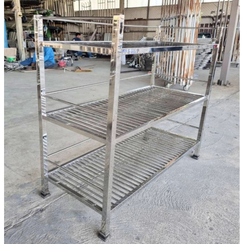 ตะแกรง 3 ชั้นพร้อมกันตก มีขอบกันตกสแตนเลสทั้ง 3 ด้านในทุกชั้น เพิ่มความปลอดภัยในการจัดวาง