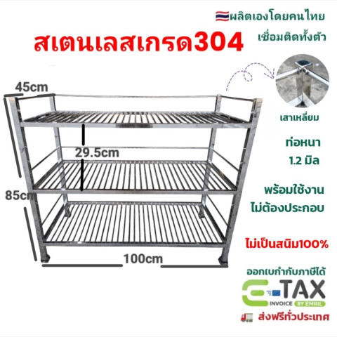 ชั้นคว่ำจานชามสแตนเลสเกรด 304 รุ่นตะแกรง 3 ชั้น เสาเหลี่ยม (เชื่อมติดทั้งตัว) ตัวช่วยจัดระเบียบครัวให้เป็นสัดส่วน วางได้ทั้งจาน ชาม อุปกรณ์ทำครัว และของใช้ต่างๆ แข็งแรง ทนทาน ไม่เป็นสนิม เหมาะสำหรับบ้าน ร้านอาหาร หรือครัวที่ใช้งานหนักทุกวัน