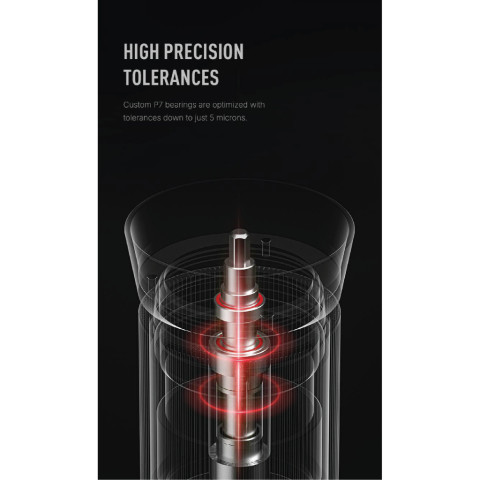 ลูกปืนชนิดพิเศษ หมุนไหลลื่น ละเอียด ไม่หนีแกน ช่วยให้การบดนิ่งและแม่นยำ
