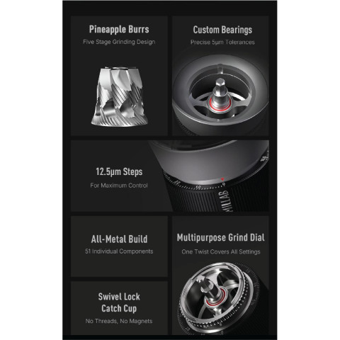 ไฮไลต์ของรุ่นนี้คือ Pineapple Burr เฟืองดีไซน์ใหม่ที่มีเฉพาะใน Millab M01 ช่วยให้ได้ผงกาแฟที่สม่ำเสมอเป็นพิเศษ ลดความคลาดเคลื่อนของขนาดผงบด เพื่อรสชาติที่นิ่ง ชัด และดึงศักยภาพของเมล็ดกาแฟออกมาได้เต็มที่ในทุกแก้ว