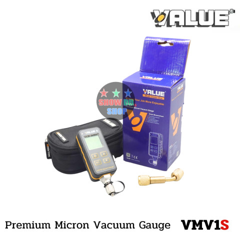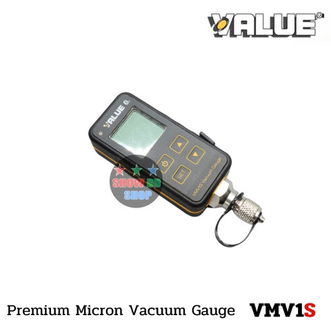 ไมครอนเกจ Vacuum Gauge VALUE รุ่น VMV-1S แวคคั่มเกจ์แบบดิจิตอลรุ่นใหม่ สำหรับช่างระบบทำความเย็นและเครื่องปรับอากาศ ช่วยตรวจวัดระดับสุญญากาศได้แม่นยำ อ่านค่าง่ายด้วยหน้าจอ LCD ขนาดใหญ่ รองรับหลายหน่วย (Pa, mBar, mmHg, Microns) เหมาะสำหรับงานดูดสูญญากาศก่อนเติมน้ำยา เพื่อเพิ่มความมั่นใจในคุณภาพงานติดตั้งและซ่อมบำรุง