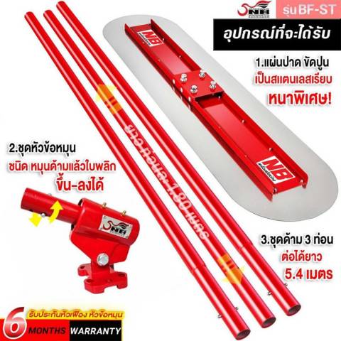 ด้ามยาวต่อท่อนได้ ระยะทำงานไกล ด้ามยาว 180 ซม. จำนวน 3 ท่อน ต่อใช้งานได้ยาว ไม่น้อยกว่า 5 เมตร ช่วยทำงานในพื้นที่กว้างโดยไม่ต้องเดินเหยียบผิวปูนบ่อย