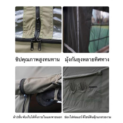 ขนาดเต็นท์: 3.6 ม. (กว้าง) x 4.8 ม. (ยาว) x 2.3 ม. (สูง)