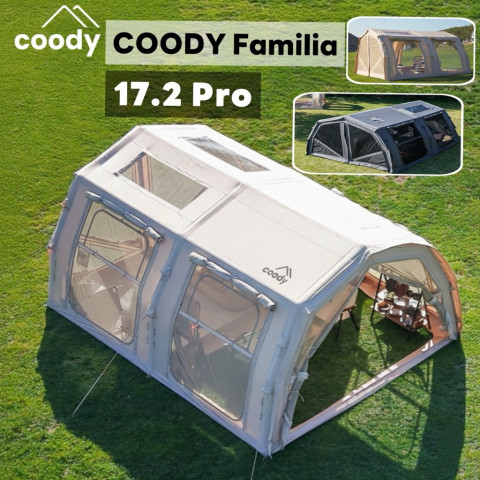 ประกัน 5 ปี🔥 Coody Familia 17.2 Pro เต็นท์เป่าลมดีไซน์หรู 2 ห้อง + ห้องนั่งเล่นขนาดใหญ่พิเศษ พร้อมเสาลมแข็งแรง กันรังสี UV และกันน้ำได้ดีเยี่ยม เหมาะสำหรับแคมป์ครอบครัว/แก๊งเพื่อนที่ต้องการพื้นที่กว้าง อยู่สบายทั้งกลางวันและกลางคืน ในโทน สีดำ สวยเท่ ดูพรีเมียม