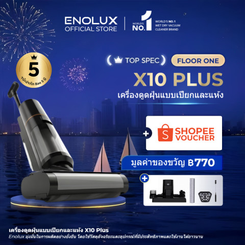 [ของแท้] Enolux X10 PLUS เครื่องทำความสะอาดพื้นอัจฉริยะไร้สายแบบเปียกและแห้ง รุ่นล่าสุด ที่รวม “ดูด + ถู + จัดการคราบ” ไว้ในเครื่องเดียว พลังดูดแรงระดับ 20,000Pa พร้อมโหมด Flatreach เอน 180° ทำความสะอาดใต้โซฟา ใต้เตียง และพื้นที่ต่ำได้ง่าย โดยยังคงประสิทธิภาพการดูดไว้เต็มกำลัง เหมาะสำหรับบ้านที่มีฝุ่นเยอะ มีสัตว์เลี้ยง หรือมีเส้นผมร่วงเป็นประจำ