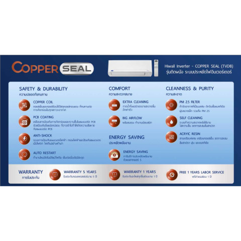 🔥ฟรีติดตั้ง🔥 แอร์ CARRIER INVERTER รุ่น COPPER SEAL ใหม่ 2026 (Hiwall Inverter - Copper Seal TVDB)