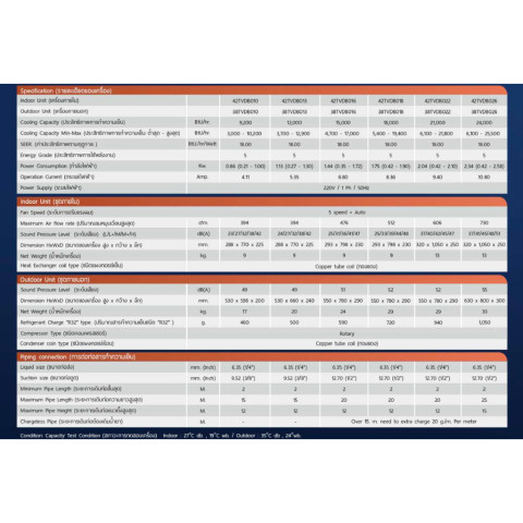 18,000 BTU: 42TVDB018 / 38TVDB018