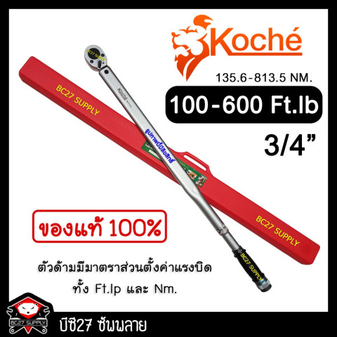 ►100-600 Ft-Lb◄ ประแจปอนด์ KOCHE ขนาด 3/4 นิ้ว (6 หุน) หรือ 135.6-813.5 Nm ประแจปอนด์คุณภาพสูงสำหรับงานช่างมืออาชีพ ออกแบบมาเพื่อการตั้งค่าแรงบิดได้อย่างแม่นยำ เหมาะสำหรับงานที่ต้องการความเที่ยงตรง ทั้งงานซ่อมบำรุงรถยนต์ รถจักรยานยนต์ เครื่องจักรอุตสาหกรรม ไปจนถึงงานประกอบชิ้นส่วนที่ต้องใช้ค่าแรงบิดตามสเปคโรงงาน