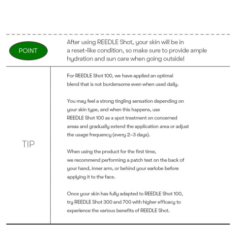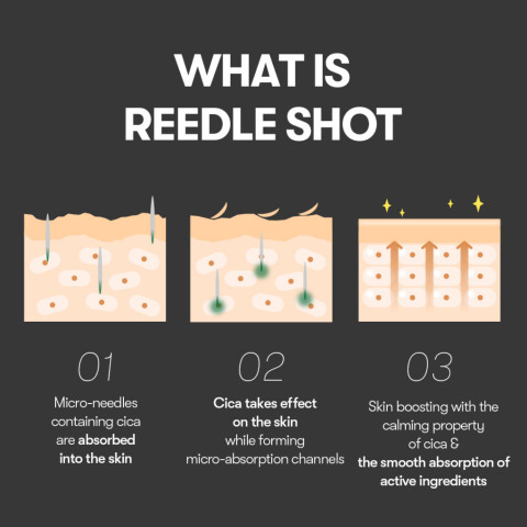 Reedle SHOT ใช้เทคโนโลยี Micro CICA REEDLE ไมโครนีดเดิลจาก Cica ที่มองไม่เห็นด้วยตาเปล่า เมื่อทาลงบนผิวจะรู้สึกเหมือน “เข็มจิ๋วๆ” ทำงาน ช่วยเปิดช่องทางให้สารบำรุงลงสู่ผิวชั้นลึก คล้ายการทำ MTS แต่ในรูปแบบเซรั่มที่อ่อนโยน ใช้ง่าย และเหมาะกับการใช้เป็นประจำ