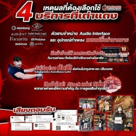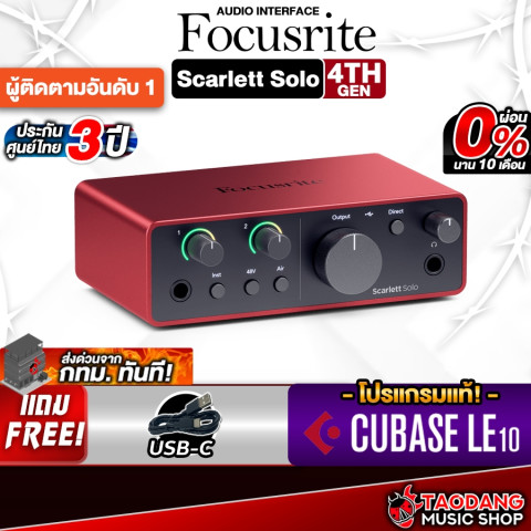 หากคุณกำลังมองหาออดิโออินเตอร์เฟสตัวแรก หรืออยากอัปเกรดให้ได้เสียงระดับสตูดิโอในงบที่คุ้มค่า Focusrite Scarlett Solo Gen 3 / Gen 4 จากร้านเต่าแดง คือคำตอบที่เหมาะที่สุดทั้งด้านคุณภาพเสียง ความทนทาน และบริการหลังการขายครบวงจร