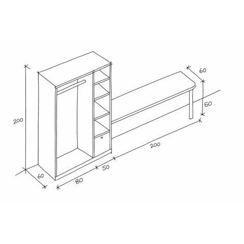 ตู้เสื้อผ้า: กว้าง 60 x ยาว 130 ซม. (ชั้นวางของ 50 ซม.) x สูง 200 ซม.