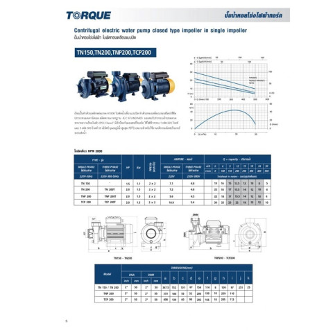 TORQUE ปั้มน้ำหอยโข่งไฟฟ้า รุ่น TQ-WP-TCP200P (TCP200P) ปั้มน้ำกำลังแรง 2 แรงม้า (1500W) พร้อมใบพัดทองเหลือง เหมาะสำหรับงานสูบน้ำปริมาณมาก ใช้งานได้ทั้งบ้าน อาคาร ฟาร์ม สวน และงานระบบน้ำที่ต้องการส่งน้ำไกล/ส่งสูง ให้แรงดันสม่ำเสมอ ทนทาน พร้อมใช้งานทุกวัน