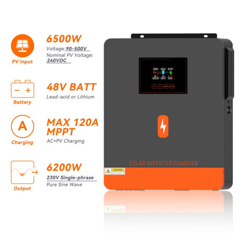 ยกระดับระบบโซลาร์เซลล์ของคุณให้ทรงพลังและเสถียรกว่าที่เคยด้วย PowMr MPPT 6.2KW 48V อินเวอร์เตอร์พลังงานแสงอาทิตย์แบบไฮบริด พร้อม MPPT 120A ในตัว 230VAC โซลูชันครบจบในเครื่องเดียวสำหรับบ้านพักอาศัย ฟาร์ม หรือธุรกิจขนาดเล็ก รองรับทั้งระบบต่อกับการไฟฟ้าและระบบออฟกริด ใช้งานได้แม้ไม่มีแบตเตอรี่ เหมาะสำหรับผู้ที่ต้องการความคุ้มค่าและความมั่นคงในระยะยาว