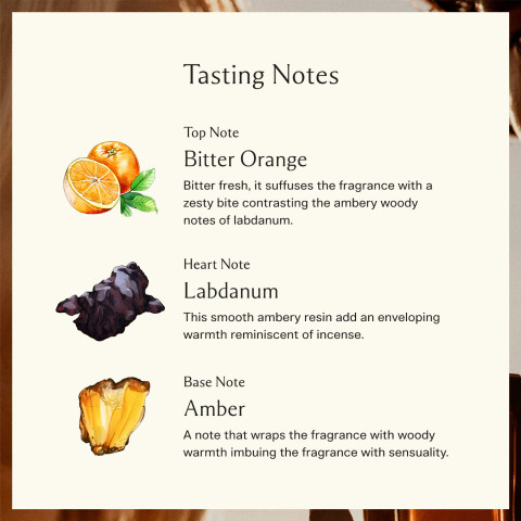 แรงบันดาลใจจากทุ่งซิสตัสป่าที่อบอวลไปด้วยกลิ่นอำพันของแลบดานัม ท่ามกลางเนินเขาอาบแดดของอันดาลูเซีย เพิ่มเสน่ห์ด้วยวานิลลานุ่มละมุน และความลุ่มลึกของโอ๊คอบไฟ กลายเป็นกลิ่นหอมที่เข้มข้น เรียบหรู และเต็มไปด้วยมิติ เหมาะสำหรับทั้งหญิงและชายที่ต้องการกลิ่นประจำตัวอันทรงพลังและน่าจดจำ