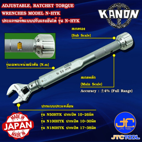 เพิ่มความแม่นยำให้ทุกงานขันน็อตด้วย Kanon ประแจปอนด์ปากเลื่อนหน่วยนิวตัน รุ่น N-HYK ประแจปอนด์คุณภาพสูงจากญี่ปุ่นที่สามารถปรับแรงบิด (Torque) ได้ตามต้องการ มาพร้อมปากเลื่อนที่ใช้ได้กับน็อตหลายขนาดในตัวเดียว ช่วยประหยัดเวลา ลดจำนวนเครื่องมือที่ต้องพกพา เหมาะสำหรับงานซ่อมบำรุง งานประกอบเครื่องจักร งานยานยนต์ และงานอุตสาหกรรมที่ต้องการค่าทอร์คที่แม่นยำ