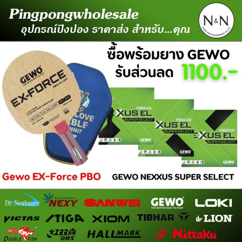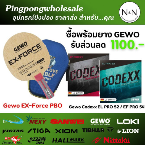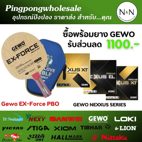 (ส่วนลด 1000 บาท เมื่อซื้อครบชุด) ไม้ปิงปอง GEWO Ex-Force PBO หรือ ZLC พร้อมยาง GEWO ระดับ Hi-End เซ็ตเดียวจบสำหรับคนที่ต้องการอัปเกรดฝีมือการเล่นแบบจริงจัง ทั้งสปีด สปิน และความรู้สึกในการคอนโทรลลูกบอลอย่างเหนือระดับ เหมาะสำหรับผู้เล่นสายบุกที่ต้องการไม้ปิงปองและยางคุณภาพสูงในราคาคุ้มค่า