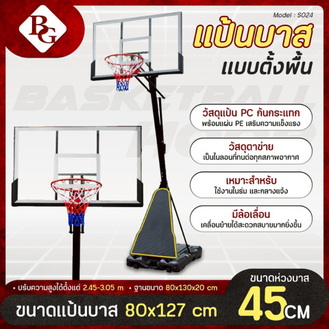 แป้นบาส BG รุ่น S024 เหมาะสำหรับ:ครอบครัวที่ต้องการกิจกรรมออกกำลังกายร่วมกันหน้าบ้านหรือในสวน