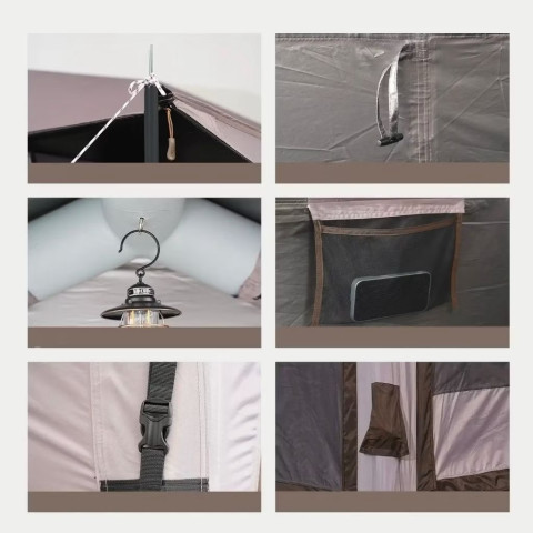ด้วยโครงสร้างแบบเสาลมทรง Cabin ขนาดใหญ่ ช่วยให้กางเต็นท์ได้รวดเร็วภายในไม่ถึง 10 นาที เพียงต่อปั๊มลมเข้ากับเสา ก็สามารถตั้งเต็นท์ได้อย่างง่ายดาย ไม่ต้องใช้เสาโลหะซับซ้อน ลดเวลาและแรงในการติดตั้ง เหมาะสำหรับทั้งมือใหม่และสายแคมป์มืออาชีพ