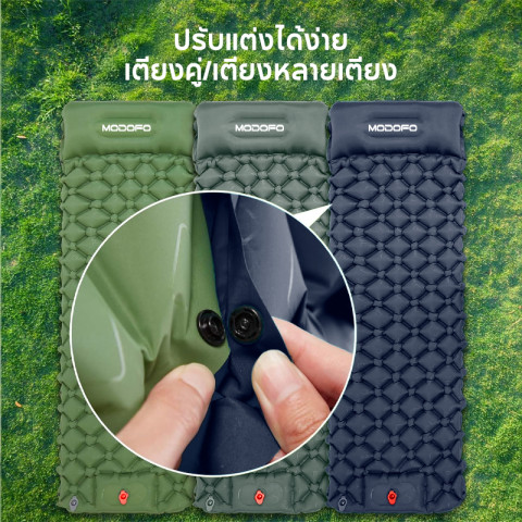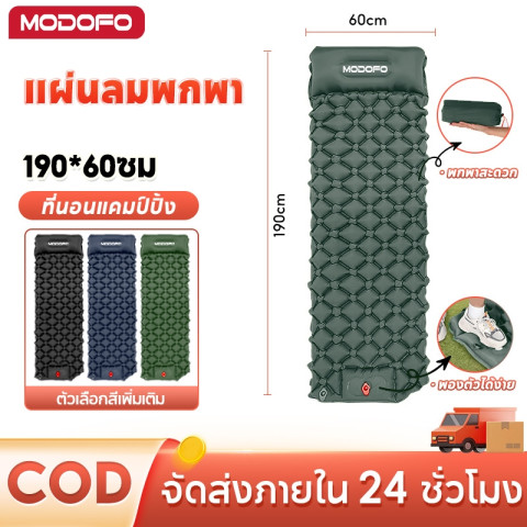 MODOFO ที่นอนลมกลางแจ้งพร้อมหมอนในตัว ออกแบบมาเพื่อสายแคมป์ปิ้ง สายท่องเที่ยว และคนรักกิจกรรมเอาต์ดอร์ที่ต้องการความสบายระดับเตียงนอนจริง แต่ยังคงความเบาและพกพาง่าย เหมาะสำหรับใช้ในเต็นท์ บนพื้นหญ้า หรือตามจุดพักแรมต่าง ๆ ให้คุณพักผ่อนได้เต็มที่แม้อยู่กลางธรรมชาติ
