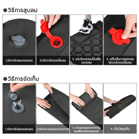 มาพร้อมระบบเติมลมที่ใช้งานง่าย สามารถเป่าได้ทั้งด้วยปากหรือใช้อุปกรณ์ช่วยเป่าลมต่าง ๆ เมื่อใช้งานเสร็จเพียงเปิดวาล์วก็สามารถไล่ลมออกได้อย่างรวดเร็ว ม้วนเก็บได้ทันที ไม่ยุ่งยากรองรับสรีระและป้องกันความเย็นจากพื้น