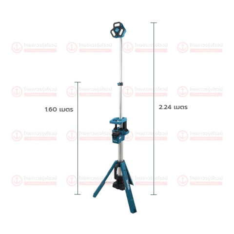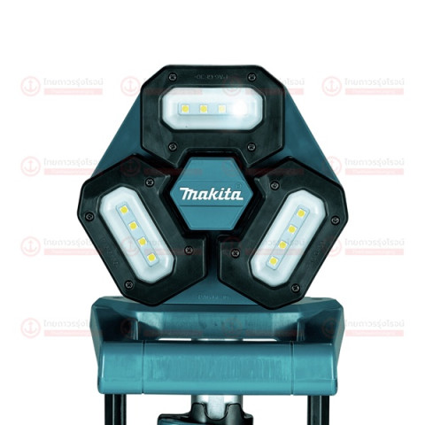 มาพร้อมฐานขาตั้งสามขาแบบขาตั้งกล้องที่มั่นคง พับเก็บได้อย่างกะทัดรัด ขนย้ายสะดวก หัวไฟ LED 3 หัวสามารถหมุนและปรับมุมแยกกันได้ เพื่อกระจายแสงให้ครอบคลุมพื้นที่ทำงานที่แตกต่างกัน ใช้พลังงานจากแบตเตอรี่ Makita 18V Li-ion (ใช้งานร่วมกับแบตเตอรี่ 14.4V และ 18V ได้) ให้ความสว่างสูงสุด 3,000 ลูเมน เหมาะทั้งงานกลางคืน งานในอาคาร หรือพื้นที่ที่ไม่มีไฟฟ้า