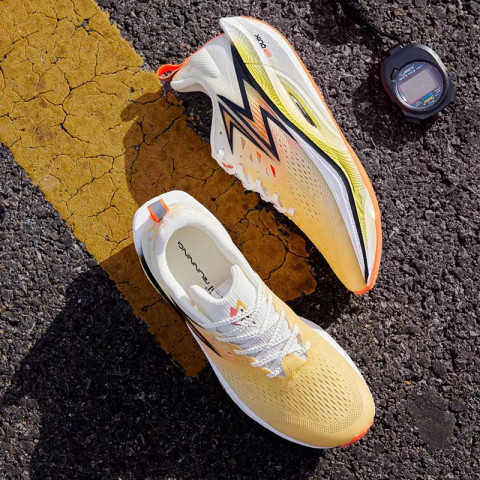 รองรับรูปเท้าและแรงส่งในจังหวะออกตัว – โครงสร้างพื้นรองเท้าช่วยกระจายแรงกดอย่างสมดุล เสริมแรงดีดกลับ (Rebound) ให้การวิ่งลื่นไหลต่อเนื่อง