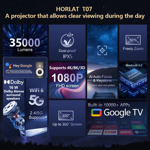 หากคุณกำลังมองหาโปรเจคเตอร์ที่สว่างจริง ภาพคมชัด เสียงดี ฟีเจอร์ครบ และใช้งานง่าย ทั้งดูหนัง เล่นเกม และทำงาน Horlat T07 Smart Projector 8K คือคำตอบที่คุ้มค่าทุกบาทที่ลงทุน