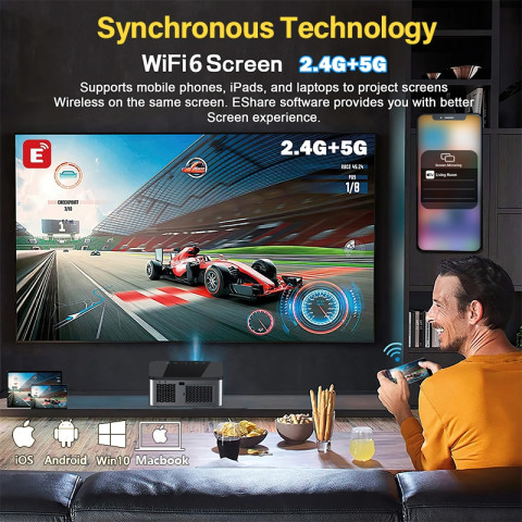 รองรับการฉายไร้สาย – รองรับ Miracast และ AirPlay เชื่อมต่อ iPhone, Android, แท็บเล็ต และแล็ปท็อปแบบไร้สาย ฉายหน้าจอได้สะดวก