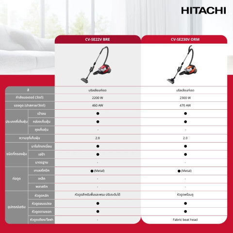 ให้บ้านสะอาดล้ำลึกในทุกมุม ด้วยเครื่องดูดฝุ่นพลังแรง Hitachi ฮิตาชิ รุ่น CV-SE230V กำลังมอเตอร์ 2,300 วัตต์ ดีไซน์ Cylinder – Cyclone สีออเร้นจ์เมทัลลิกสุดพรีเมียม ผสานระบบกรองฝุ่น 7 ขั้นตอนพร้อมแผ่นกรอง HEPA และนาโนไททาเนียม ดักจับฝุ่นละเอียดและกลิ่นไม่พึงประสงค์ได้อย่างมีประสิทธิภาพ เหมาะสำหรับบ้านที่มีเด็กเล็ก ผู้สูงอายุ หรือผู้ที่แพ้ง่าย