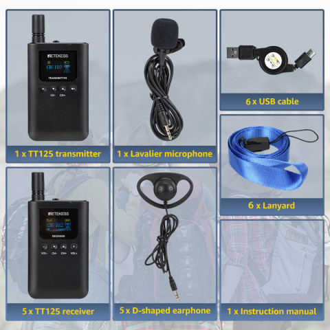 Retekess TT125 ระบบไมโครโฟนไร้สาย สำหรับเดินทาง (ชุดพร้อมตัวรับ 20 ชิ้น) ราคา 24,150.90 บาท