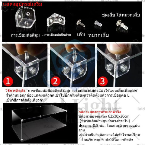 แผ่นอะคริลิกมี ฟิล์มป้องกัน ติดอยู่ทั้งสองด้าน โปรดลอกออกก่อนประกอบเพื่อความใสคมชัด