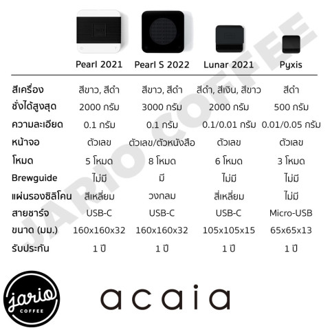 Jario x acaia Pearl 2021 Smart Digital Coffee Scale (Pearl Pitch Black) ตาชั่งกาแฟดิจิตอลรุ่นอัปเดตปี 2021 ที่สายดริปและสายเอสเพรสโซไว้ใจ ใช้งานลื่น อ่านค่าง่ายแม้ในที่สว่าง พร้อม Flow Rate Indicator ช่วยคุมความสม่ำเสมอของการเทน้ำให้แม่นยำขึ้นทุกแก้ว เหมาะทั้งมือใหม่ที่อยากชงให้อร่อยขึ้น และบาริสต้าที่ต้องการความเที่ยงตรงในทุกขั้นตอน
