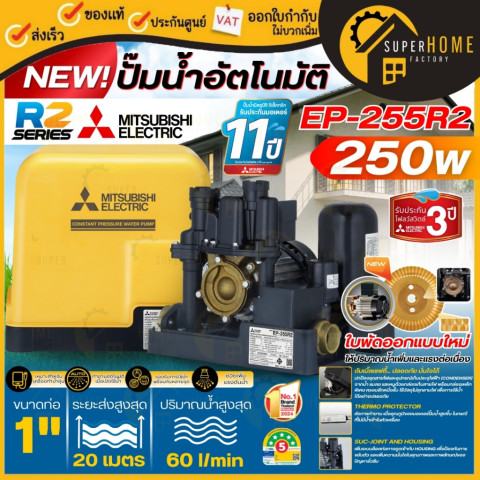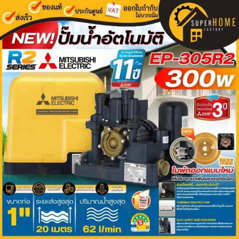 💥รุ่นใหม่ 2025💥 MITSUBISHI ปั๊มน้ำอัตโนมัติ รุ่น EP แรงดันสม่ำเสมอ เปิดก๊อกพร้อมกันได้หลายจุด เหมาะทั้งบ้าน 1-4 ชั้นและบ้านขนาดใหญ่ เลือกกำลังวัตต์ให้ตรงกับจำนวนจุดใช้น้ำ เพื่อการใช้งานที่ลื่นไหลและคุ้มค่าที่สุด