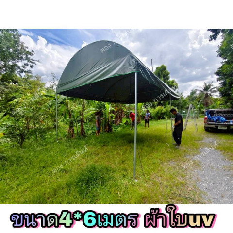 เต็นท์โค้ง 4×6 เมตร ผ้าใบ UV รุ่นประหยัด (ผลิต 3 วัน) พร้อมติดตั้งฟรี กทม. ราคา 9,500.00 บาท เหมาะสำหรับใช้งานเป็นพื้นที่อเนกประสงค์หน้าบ้าน ร้านค้า ลานกิจกรรม ที่จอดรถ หรือกันแดดกันฝนแบบใช้งานจริง โครงสร้างแข็งแรงด้วยเหล็กกัลวาไนซ์แท้ และผ้าใบ UV หนาเหนียว ทนแดด พร้อมสีสวยสด ดูแลง่าย