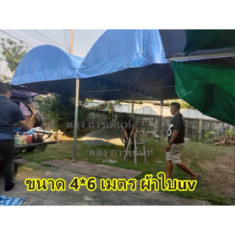 ขนาดเต็นท์: 4×6 เมตร (6 เสา / 2 ช่อง ช่องละ 3 เมตร)