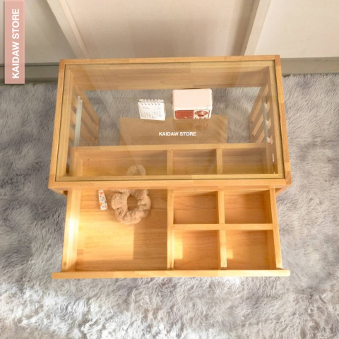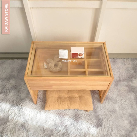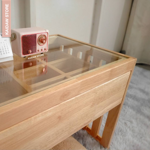 [พรีออเดอร์ 15 วัน] โต๊ะกระจก ไม้ยางพาราแท้ พร้อมลิ้นชัก ขาระแนงสวยมาก - KD6601-18 ราคา 5,190.00 บาท