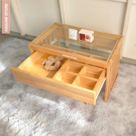 โต๊ะไม้แท้ดีไซน์มินิมอลที่ “สวยครบ ใช้งานจริง” ด้วยท็อปกระจกเพิ่มความโปร่งหรู พร้อมลิ้นชักเก็บของให้พื้นที่ดูเรียบร้อย ขาระแนงดีเทลสวย ช่วยยกระดับมุมห้องให้ดูแพงทันที เหมาะทั้งวางข้างเตียง มุมโซฟา หรือเป็นโต๊ะอเนกประสงค์ในคอนโด