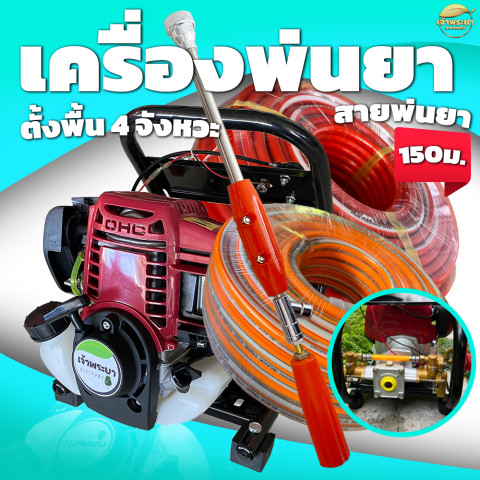 เครื่องพ่นยาตั้งพื้น 4 จังหวะ 100 บา 4 แรง (แถมด้ามพ่น + ชุดซ่อม) ตัวช่วยงานเกษตรที่พร้อมลุยทุกแปลง พ่นได้แรงและสม่ำเสมอด้วยแรงดันสูง 100 บาร์ ส่งละอองได้ทั้ง พ่นไกล 15 เมตร และ พ่นสูง 15 เมตร เหมาะสำหรับพ่นยาฆ่าแมลง พ่นปุ๋ยน้ำ พ่นยาคุม/กำจัดวัชพืช และงานพ่นทั่วไปในสวน/ไร่ ใช้เครื่องยนต์ 4 จังหวะ ประหยัดและดูแลง่าย พร้อมระบบ สตาร์ทง่าย ใช้น้ำมันเบนซิน อะไหล่มีรองรับ ทั่วประเทศ ใช้งานได้มั่นใจยาวนาน