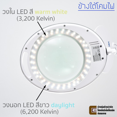 เลนส์กระจกขนาด 6 นิ้ว ภาพใส คม ลดความเพี้ยน เหมาะสำหรับการมองรายละเอียดเล็กๆ ได้ชัดเจน (ไม่ใช่เลนส์พลาสติก)ไฟ LED 2 โทนสี: Warm + Daylight ปรับได้อิสระ