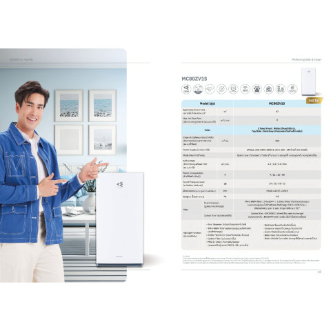 ระบบฟอกอากาศ: Streamer Technology + Electrostatic HEPA Filter + Carbon Filter